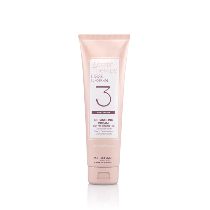 Comenzi telefonice: 0736 116 601Alfaparf Milano Lisse Design Keratin Therapy Detangling Cream este o cremă leave-in de descurcare și netezire a părului, folosită în etapa finală a tratamentului cu keratină. Ajută la protejarea părului împotriva căldurii, facilitează coafarea și oferă un aspect neted și strălucitor, fără să îngrașe sau să încarce firele.