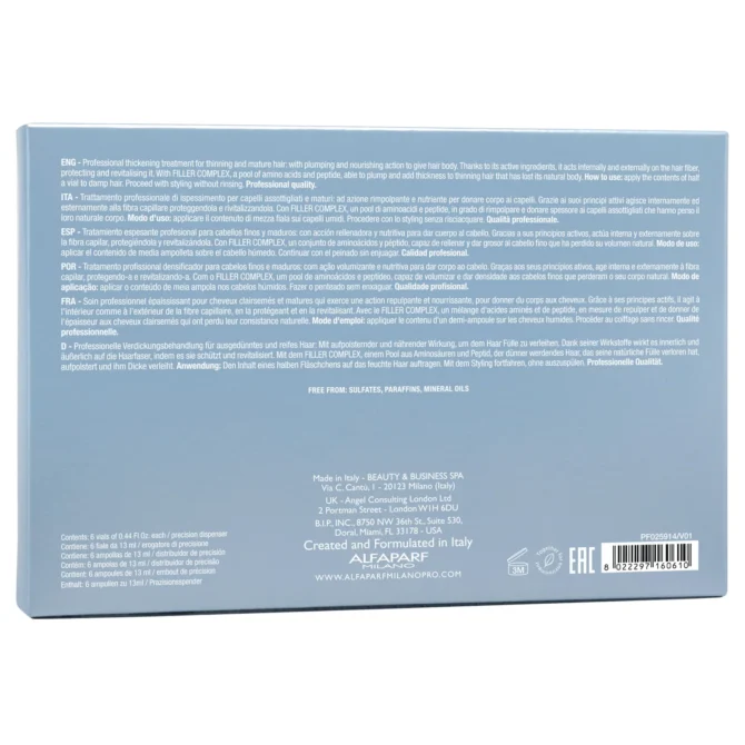Tratament profesional în fiole pentru păr subțire și matur. Oferă volum, densitate și protecție termică, revitalizând fibra capilară. Formulă vegană, delicată, potrivită pentru utilizare frecventă.