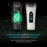 Ecran LCD care arată procentajul bateriei rămase, lamă fixă „Black Diamond” complet ajustabilă, baterie litiu de 2500 mAh ce asigură până la 180 de minute de utilizare continuă.