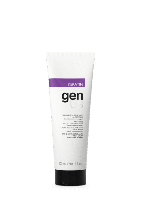 Comenzi telefonice: 0736 116 601Genus Hair Keratin Anti-Frizz Restructuring Cream este o crema profesionala leave-in, special conceputa pentru parul deteriorat, fragil si tratat chimic.