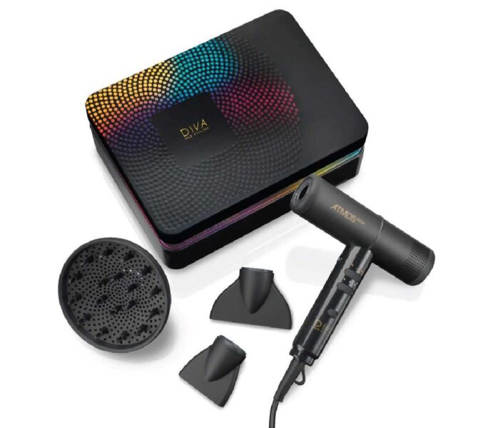 Comenzi telefonice: 0736 116 601Aveți stil și substanță cu uscătorul ultra compact Diva Pro Atmos Atom, care cântărește un sfert din greutatea unui uscator cu motor AC profesional tipic, fără a face compromisuri la putere sau putere.