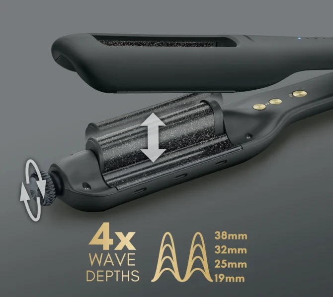 4 x setări de valuri de adâncime pentru valuri de mică adâncime până la super-profunde. 5 x setări de căldură variabile inteligente de la 120°C până la 210°C – creează orice val și protejează părul de deteriorarea termică.