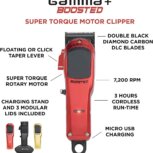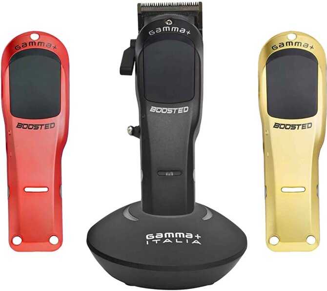 Un alt aparat de tuns puternic, de la GAMMA+. Cu mai multă putere decât oricând, mașina de tuns profesională Boosted are un motor rotativ super-cuplu cu 7.200 rpm, dar totuși are zgomot redus și vibrații reduse. Această mașină de tuns unisex are trei (3) kituri de modificare a corpului cu capace de culoare Negru, Roșu și Auriu – toate având logo-ul Boosted și o lumină led atunci când sunt utilizate. Asamblat cu combinația de lame Double Black Diamond dintre o lamă fixă fade și o lamă de tăiere subțire și adâncă pentru blending, fading și îndepărtare bulk. Ambele sunt complet reglabile și pot fi ușor reglate la zero pentru tăierea și finisarea la piele.
