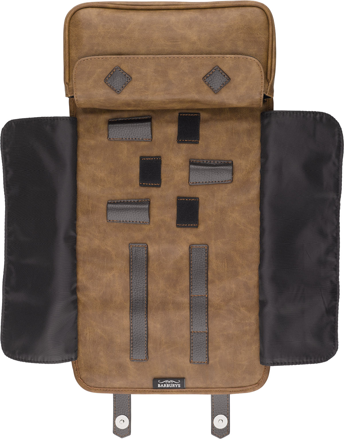 Geanta din piele sintetica cu inchidere cu magnet.Capacitate: 3 piepteni si 3 foarfece, plus un buzunar voluminos