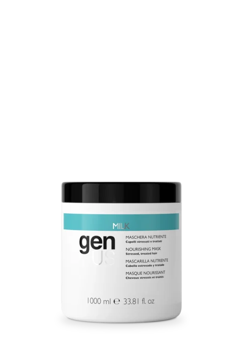 GenUS Milk Nourishing Mask 1000 ml este o masca nutritiva profesionala, special conceputa pentru parul stresat si tratat chimic. Formula sa bogata si cremoasa, imbogatita cu proteine din lapte, hraneste intens fibra capilara, protejeaza parul si ii reda supletea si aspectul sanatos.