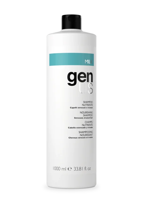 GenUS Milk Nourishing Shampoo 1000 ml este un sampon profesional nutritiv, ideal pentru parul stresat, fragil sau tratat chimic. Formula sa delicata, imbogatita cu proteine din lapte si proteine din grau, curata eficient fara a agresa fibra capilara, oferind hidratare, elasticitate si un aspect vizibil mai sanatos.
