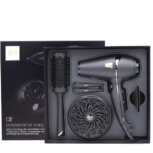 Setul pentru o coafare perfecta contine: uscatorul de par profesional premiat ghd air®, cu un motor profesional puternic pentru uscare ultra-rapida si tehnologie ionica care va permite sa obtineti un finisaj profesional in jumatate de timp*; un difuzor pentru a obtine o estompare naturala si voluminoasa; o duza plata pentru coafare de precizie; doua cleme pentru a sectiona parul si a facilita coafarea; o perie ceramica ghd marimea 3 pentru a da corp si volum stilului tau si o punga de protectie pentru praf pentru a-l depozita