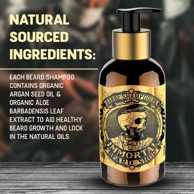 O BARBĂ MOALE, NEDEA, LUXOSĂ. Arată lumii o barbă sănătoasă și mătăsoasă. Cu doar 2 stropi de șampon pentru barbă în fiecare zi, veți observa o diferență, la fel și toți ceilalți. Pregătește-te pentru complimente oriunde te duci. Șamponul pentru barbă Immortal NYC este o formulă specială de curățare și hidratare, care conține Aloe Vera și Pro Vitamina B5, care vă lasă barba mai moale, mai netedă și mai ușor de pieptănat.