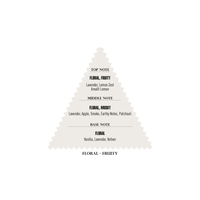 • Note de bază: lavandă, vanilie, parfum de vetiver