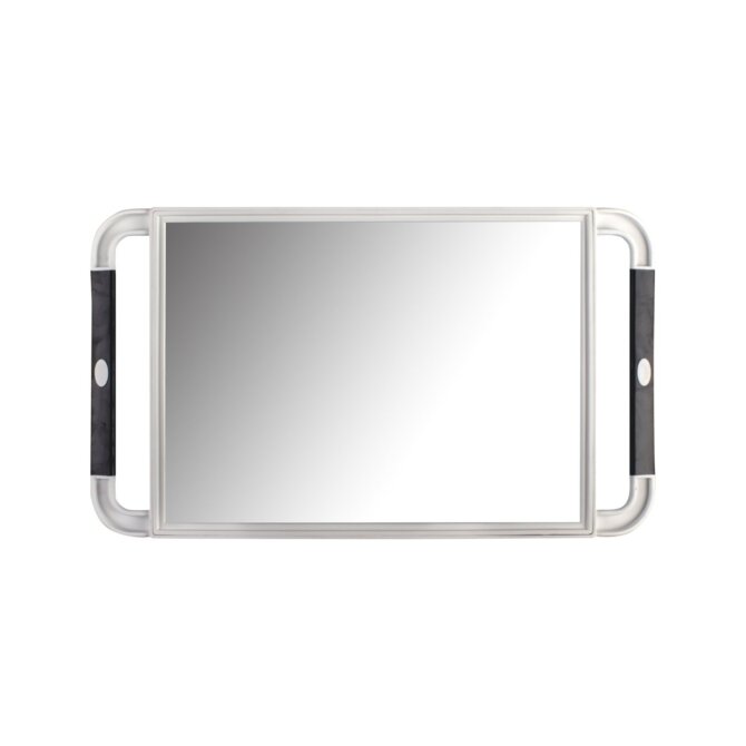Rama oglinzii este din plastic alb, prevazuta cu manere (negre) pentru o manevrare usoara.