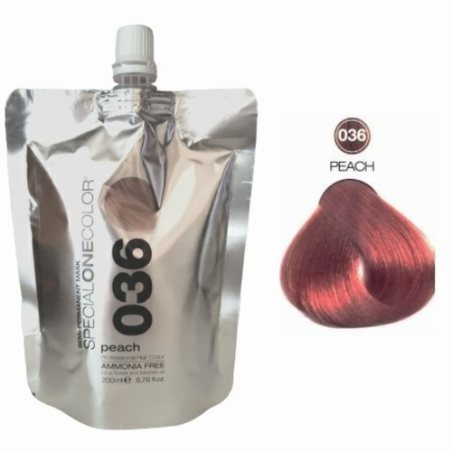 Masca de par semipermanenta, fara amoniac pentru toate tipurile de par – cu extract de floare de lotus si ulei de baobab – Special One Color 200ml. Masca nuantator. Masca de par cu pigment 036 Peach