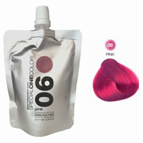 Masca de par semipermanenta, fara amoniac pentru toate tipurile de par – cu extract de floare de lotus si ulei de baobab – Special One Color 200ml. Masca nuantator. Masca de par cu pigment 06 Pink