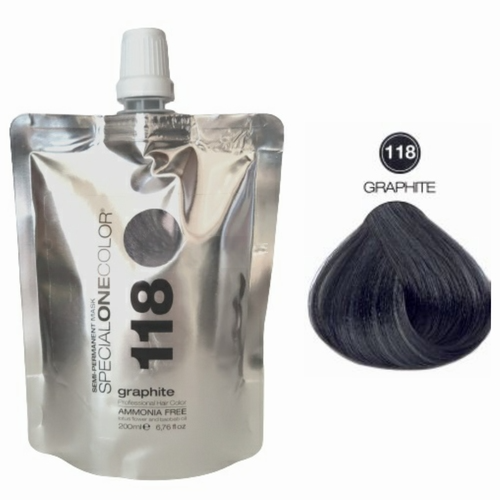 Masca de par semipermanenta, fara amoniac pentru toate tipurile de par – cu extract de floare de lotus si ulei de baobab – Special One Color 200ml. Masca nuantator. Masca de par cu pigment 118 Graphite