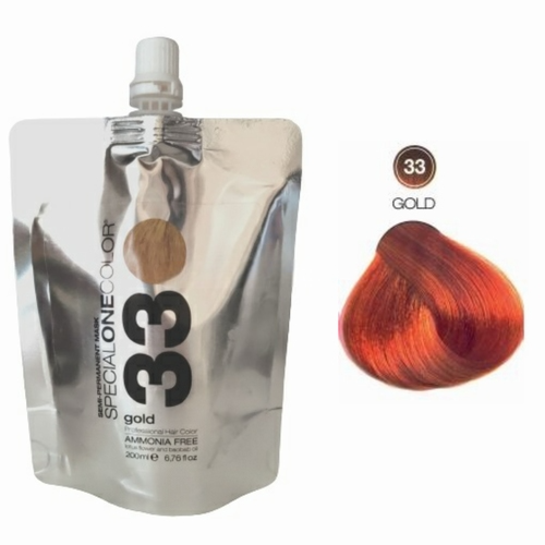 Masca de par semipermanenta, fara amoniac pentru toate tipurile de par – cu extract de floare de lotus si ulei de baobab – Special One Color 200ml. Masca nuantator. Masca de par cu pigment 33 Gold