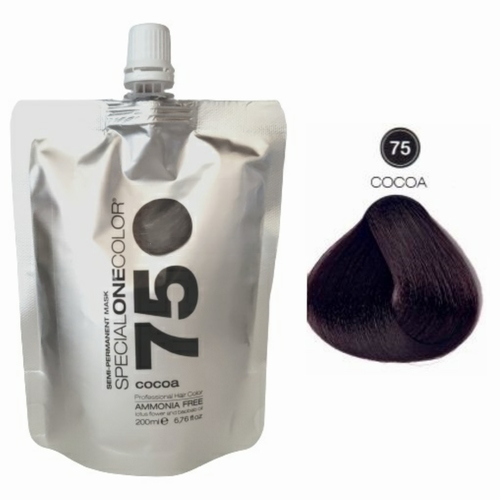 Masca de par semipermanenta, fara amoniac pentru toate tipurile de par – cu extract de floare de lotus si ulei de baobab – Special One Color 200ml. Masca nuantator. Masca de par cu pigment 75 Cocoa – Maro cacao