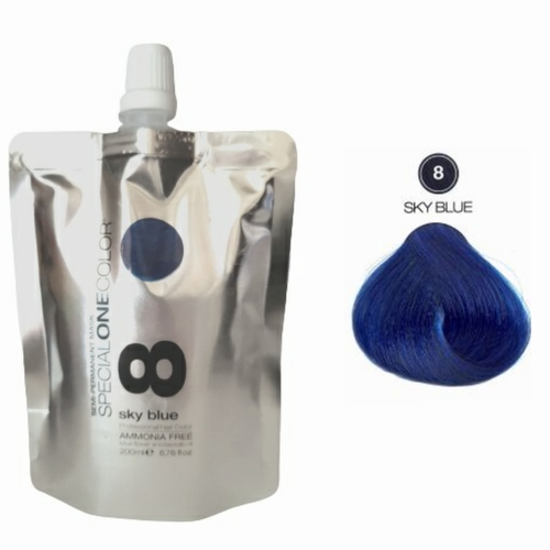 Masca de par semipermanenta, fara amoniac pentru toate tipurile de par – cu extract de floare de lotus si ulei de baobab – Special One Color 200ml. Masca nuantator. Masca de par cu pigment 8 Sky Blue – Albastru intens