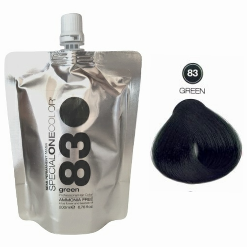 Masca de par semipermanenta, fara amoniac pentru toate tipurile de par – cu extract de floare de lotus si ulei de baobab – Special One Color 200ml. Masca nuantator. Masca de par cu pigment 83 Green – verde
