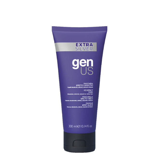 Masca Genus Extra Silver Ice Effect face parte din gama profesionala Extra Silver, special conceputa pentru intretinerea si corectarea nuantelor reci pe parul blond, decolorat sau alb. Datorita concentratiei de pigmenţi reci, masca neutralizeaza eficient reflexiile galbene sau aurii si intensifica efectul rece al culorii.