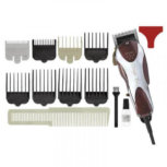 8 distantiere, 1 protectie lama din plastic, 1 recipient ulei lubrifiere, 1 pieptene de tuns, 1 perie de curatat