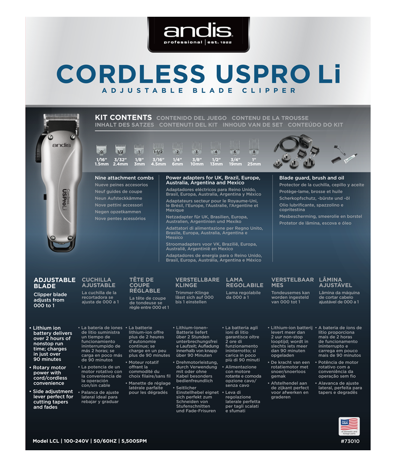 Masina de tuns USPRO LI poate fi folosita fara cablu, oferind astfel comoditate și libertate de mișcare. Cu lama din otel inoxidabil de inalta calitate si cu o baterie eficienta va ofera pana la 2 ore de functionare si o reincarcare in doar 90 de minute.