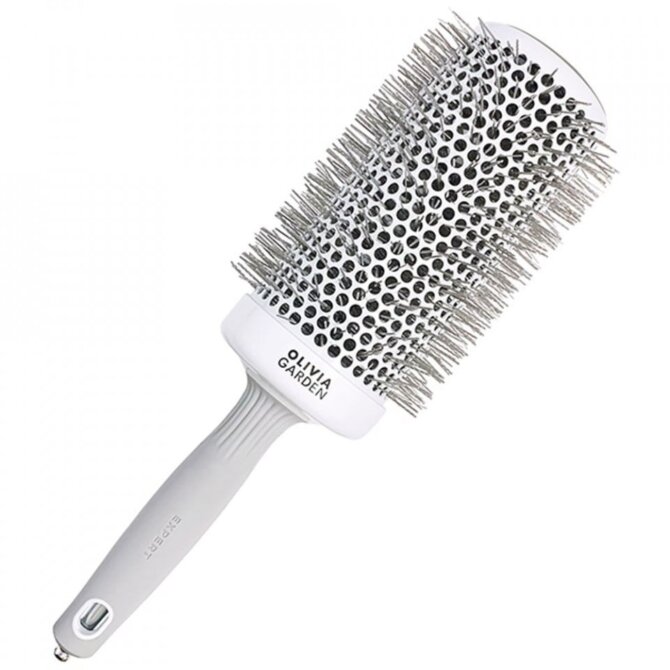Olivia Garden Perie rotundă din ceramică și ioni cu corp de perie extra lung pentru uscarea și netezirea părului de lungime medie.