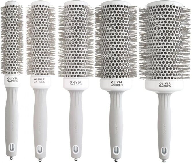 Olivia Garden Kit 5 perii de par Expert Blowout Speed White&Grey – Perii termice profesionale pentru uscare rapida, volum si stralucire.