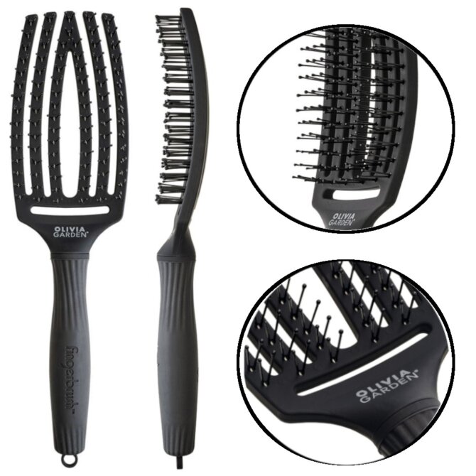 Ideală atât pentru uz profesional în saloane, cât și pentru utilizare zilnică acasă, peria Olivia Garden Fingerbrush Black Onyx este potrivită pentru toate tipurile de păr, inclusiv păr drept, ondulat sau fin.