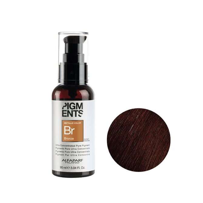 Pigment Bronze Alfaparf Milano este ideal pentru obtinerea si evidentierea tonurilor de bronz in par, ajuta la mentinerea rezultatului obtinut, confera profunzime tonurilor brune si creste intensitatea acestora prin completarea culorii parului cu nuante de chihlimbar. Pigmentul sporeste stralucirea parului si pastreaza tonul saturat al culorii parului. Potrivit pentru parul natural, nevopsit si vopsit.