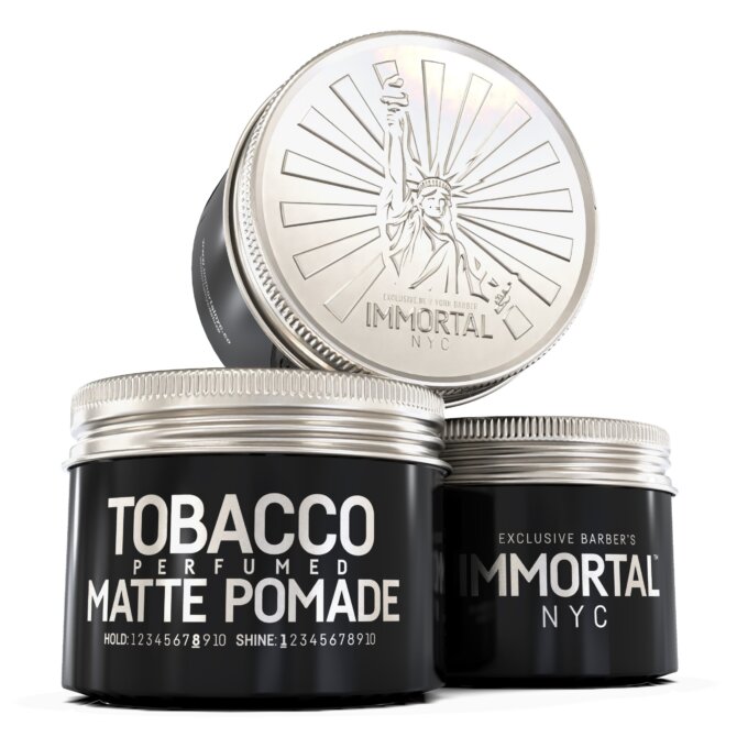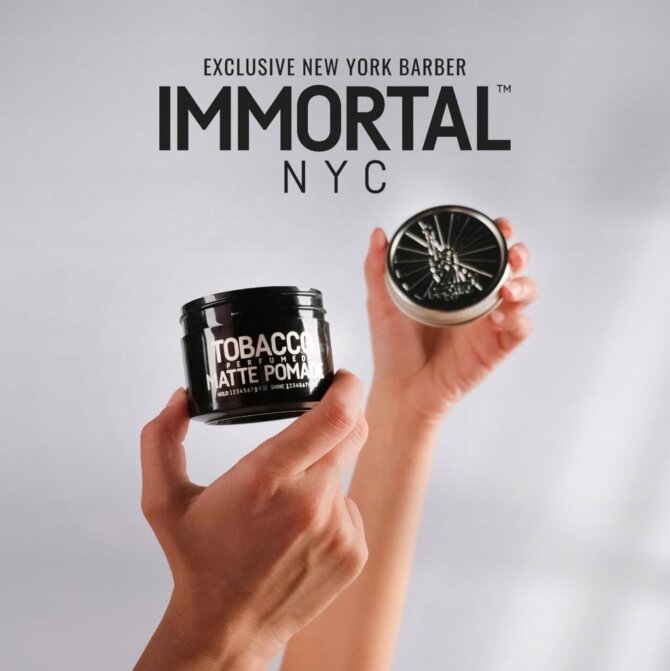 Pomada Immortal NYC cu putere de fixare puternică: conferă părului un aspect mat și îngrijit.