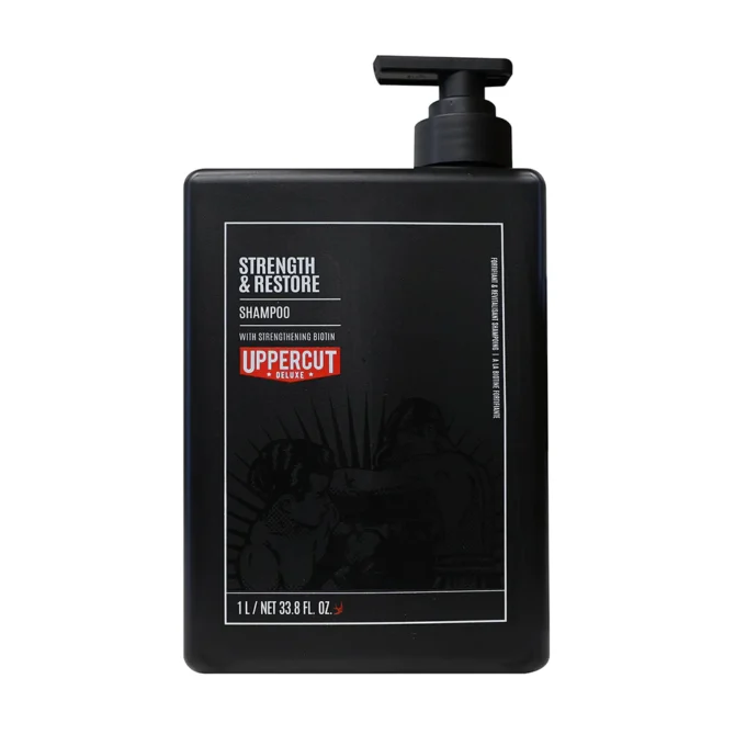 Uppercut Deluxe Strength and Restore Shampoo 1000ml este un sampon conceput pentru curatare profunda si ingrijire eficienta a parului. Formula sa echilibrata include ingrediente ce sprijina fortifierea firului de par si imbunatatesc textura in timp, lasand parul mai usor de aranjat si plin de vitalitate.