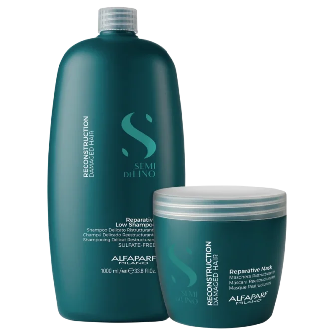 Masca de par pentru par deteriorat. Alfaparf Semi Di Lino Reconstruction Reparative Mask repara structura cortexului si imbunatateste rezistenta parului. Ideal pentru parul deteriorat de procese chimice sau mecanice.