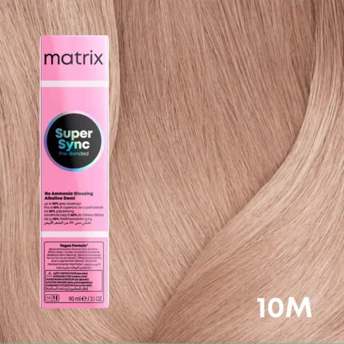 Matrix Super Sync Pre-Bonded este cea mai noua vopsea Matrix Professional – culoare cosmetica profesionala cu formula pre-bonded, fara amoniac, ton pe ton. Ingrijire simultana de catre Cera-Oil-Complex si acumularea optima a pigmentilor de culoare de catre Ceramide-Complex. SoColor Sync demi-permanenta ofera o culoare perfecta a parului, stralucire stralucitoare si o stare excelenta pentru toate tipurile de par.